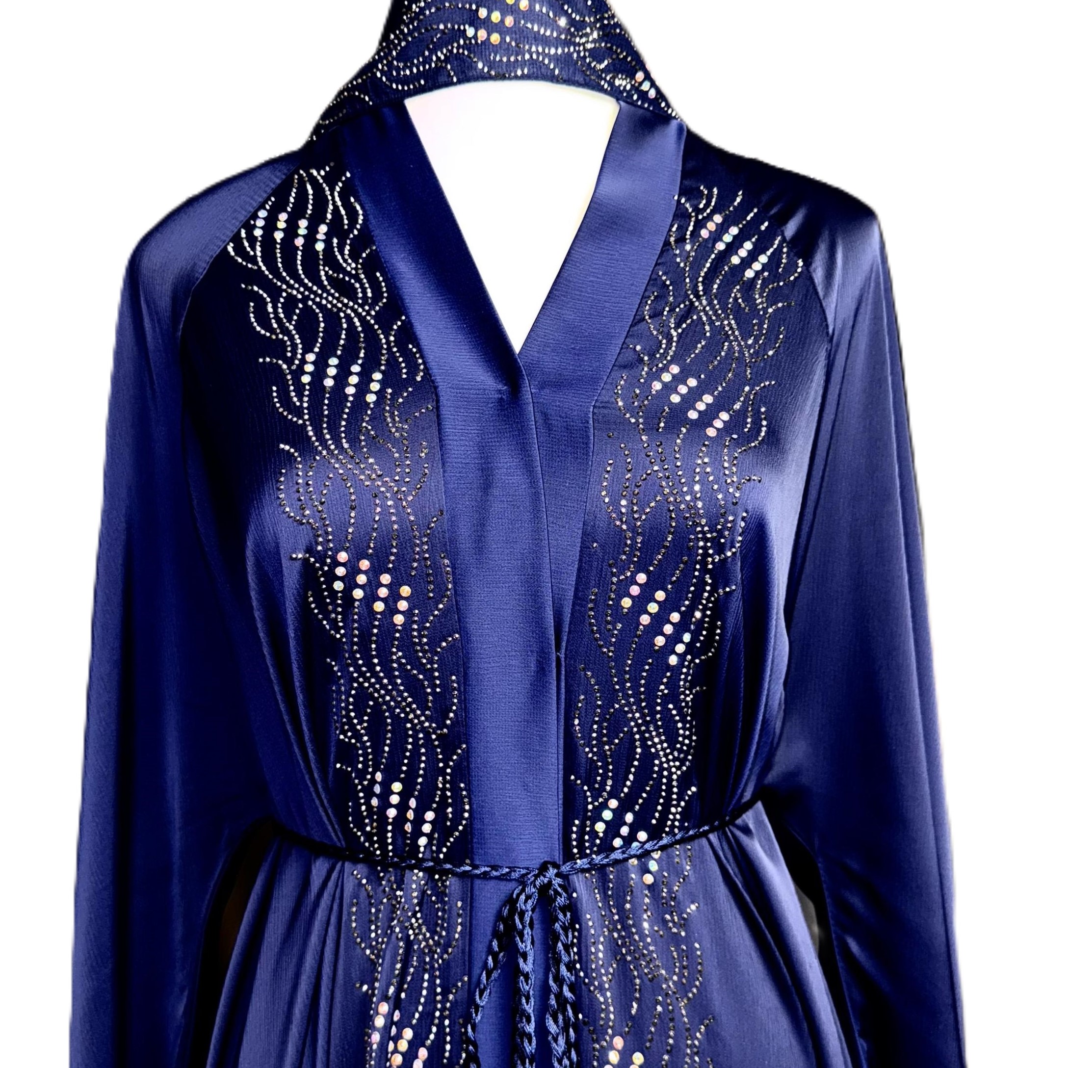 Designed for the woman who embraces her inner queen, this abaya captures the essence of grace and nobility. With its rich, luxurious fabric and delicate, intricate details, the Midnight Majesty drapes you in the splendor of a modern-day princess.